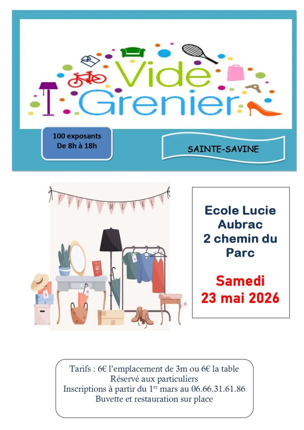 Vide-Greniers Ecole Lucie Aubrac Sainte-Savine samedi 23 mai 2026.