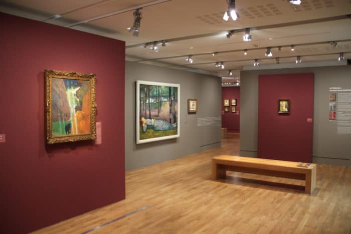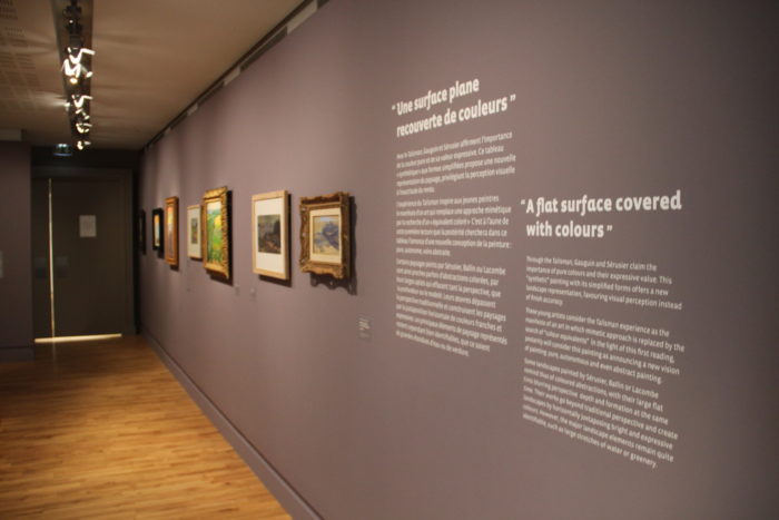 Plus d’une décennie après le premier coup de pinceau, le paysage abstrait du Bois d’Amour est accroché au mur couleur lie de vin dans la fraîcheur des salles du musée. Malgré sa petite taille – 27 cm de hauteur pour 21,5 de largeur – il est la vedette de l’exposition et pose un regard comblé sur les peintures de ses amis artistes qui l’entourent : Paul Gauguin, Émile Bernard ou encore le moins connu Charles Laval.