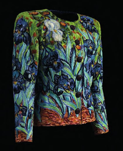 Créations originales, costumes de kabuki de type uchikake et estampes avec courtisanes témoignent de cette admiration. De la même manière, la gaieté et les couleurs des iris ont été source d’inspiration. Son emblématique veste brodée réalisée en 1988 est par exemple une référence au fameux tableau Iris de Vincent Van Gogh (1889).