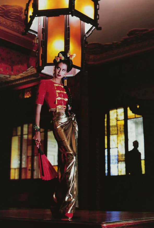 Pour sa collection automne-hiver 1977, il a su extraire les principales caractéristiques des habits chinois – coupe droite, volume, manches larges – sur une construction technique à l’Occidental. Plus qu’une retranscription d’un vêtement authentique et historique, le couturier a privilégié l’effet esthétique.