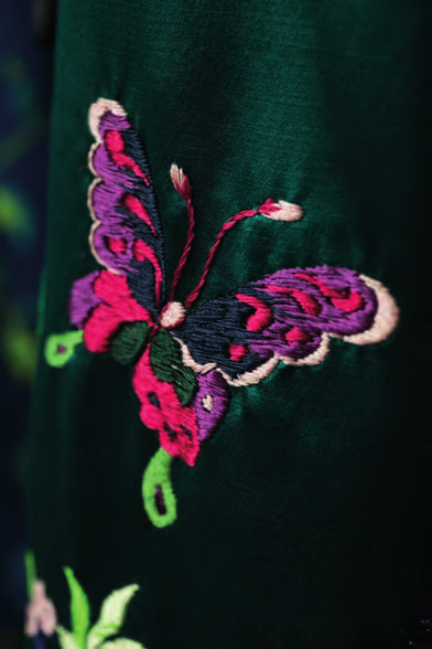 Le dialogue entre les tenues haute-couture et les robes et vestes à motifs dragons révèle une image théâtrale et transformée du pays. Une vision sans cesse renouvelée des tenues traditionnelles chinoises, des imprimés et des motifs, à l’image du vase à couvercle antique de Chine, de la dynastie Han.
