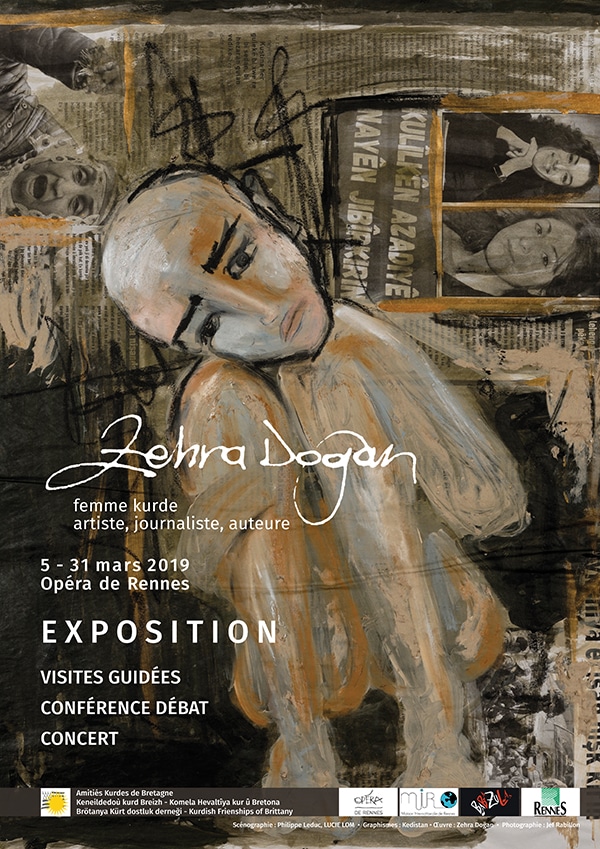 Les œuvres de l’artiste kurde Zehra Doǧan continuent de circuler en Europe. Du 5 au 31 mars 2019, c’est au tour de l’Opéra de Rennes de présenter l’exposition Zehra Doǧan, les yeux grands ouverts. Présentée dans la salle Carré Lully, elle est organisée par l’association Amitiés Kurdes de Bretagne, en partenariat avec l’Opéra de Rennes, la Maison Internationale de Rennes et le bar BabaZula. Présentation.