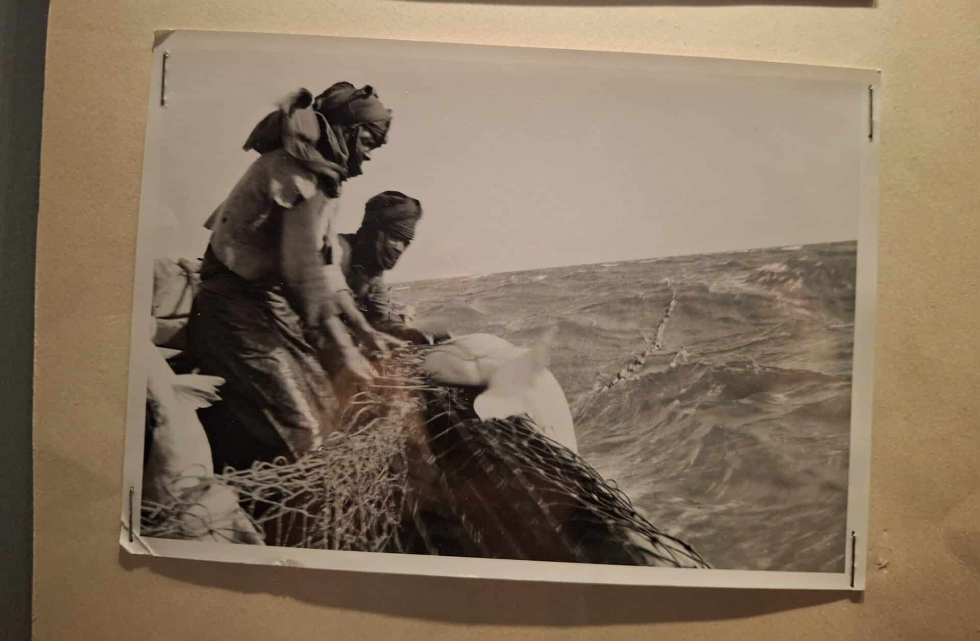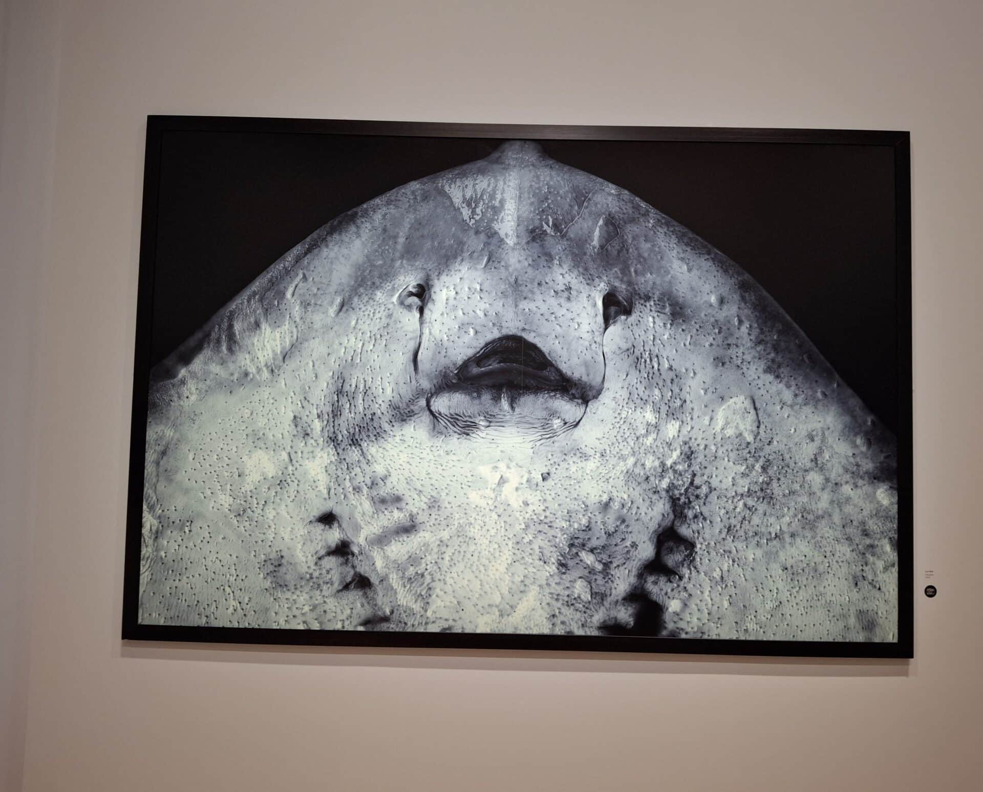 En 1984, Jean Gaumy embarque à bord d’un chalutier. Bien qu’il souffre du mal de mer, il photographie tout : les manœuvres du chalutier, les pêcheurs au travail, les poissons pris dans les filets : ci-dessous : une raie !