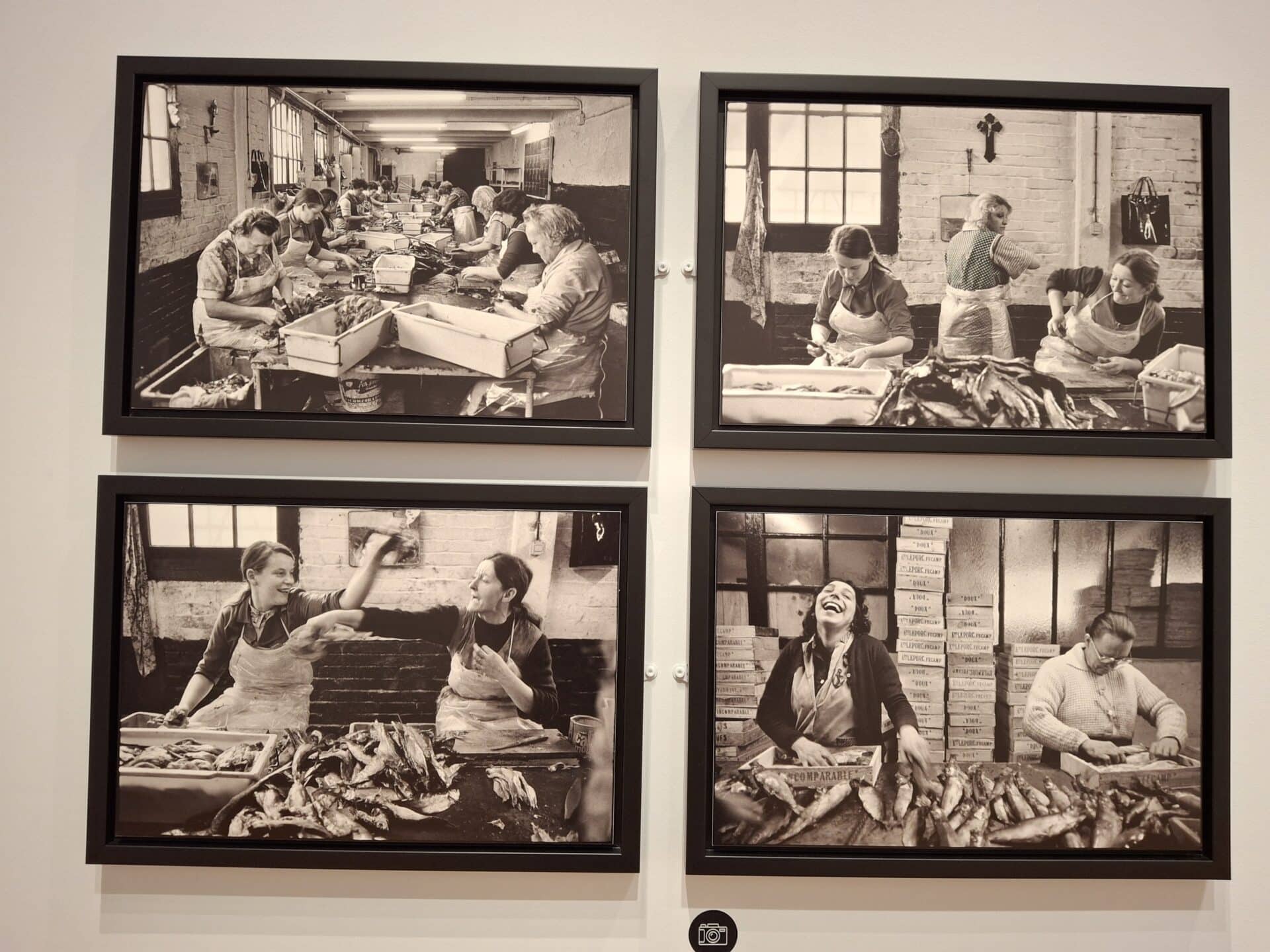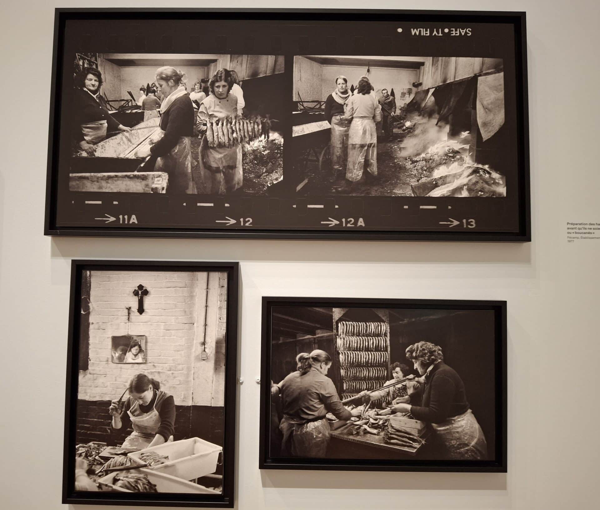 En 1972, Jean Gaumy visite une conserverie à Fécamp (76) et réalise un reportage pour garder un souvenir d’un métier en train de disparaître ; en 1977, il réalise un film avec le même objectif ! Les ouvrières sont debout et répètent toute la journée les mêmes gestes : elles découpent la tête et la queue du poisson. Le photographe a capté un moment précieux : la discussion et les éclats de rire des ouvrières pour oublier leur fatigue !