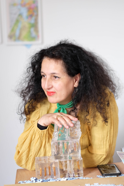 Zineb Sedira est une artiste franco-algérienne née en 1963 à Gennevilliers, vivant et travaillant à Londres. Se définissant comme une conteuse d’histoires, Zineb Sedira crée de nouveaux récits à partir de ceux qu’elle recueille auprès de personnes, témoins d’événements historiques liés à la colonisation ou encore la guerre d’indépendance algérienne. Par sa pratique de la photographie et de la vidéo, l’artiste capte et rend visible leurs histoires, une manière de faciliter la transmission de la mémoire entre les cultures, les générations et les langues.