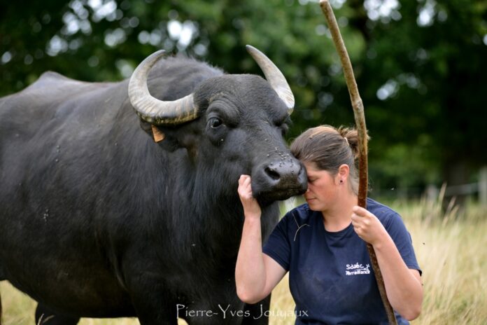Animal au caractère bien trempé, têtu et susceptible, elle séduit par son extrême intelligence et son rapport particulier avec l’humain. Facile à domestiquer sous réserve de prendre du temps, elle apprécie particulièrement les petites attentions comme les séances de grattouilles et papouille de fin de journée et peut devenir très familière avec l’homme. Chaque bufflonne a son caractère propre et ses petits rituels qui doivent être prises en compte sous peine de les vexer… Mais heureusement elle ne sont pas rancunières et une bonne poignée de céréales suffis souvent à les remettre de bonne humeur.