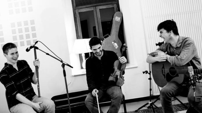 Au violon, chant, pieds : Emmanuelle Bouthillier | À la contrebasse et au chant : Dylan James | À l’accordéon : Yannick Laridon.