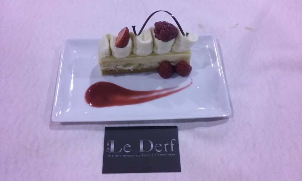 Pour le plat (avec un accord mets et vin), les trois finalistes étaient Alan Bernard (d’Ebulli’sens, boulevard Beaumont à Rennes), Nicolas Prodhomme (des Saveurs de Nicolas, à Nouvoitou – qui a préparé une double côte de cochon de Bréal-sous-Montfort), Kader Mheyaoui (du Moon, avenue Janvier à Rennes). Alan Bernard a remporté le premier prix avec un cochon ibérique au chorizo, servi avec un vin frais portugais sélectionné par Cassandre. On en salive déjà ! Patrick Jeffroy a salué la « magnifique cuisson de la viande, encore un petit peu rosée ».