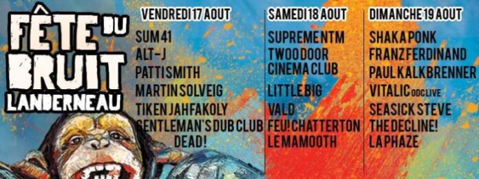 La Fête du Bruit célèbrera son 10e anniversaire cet été ! 10 ans d’activisme culturel au service de la musique, du territoire et du public. Depuis les débuts, ce sont plus de 290 000 festivaliers qui sont venus applaudir plus de 150 artistes de renom : Amy Mac Donald, Asaf Avidan, David Guetta, Iggy Pop, Kavinsky, Lily Wood and The Prick, Madness, M, Mika, Moby, Patrice, Placebo, Robert Plant, Saez, Simple Minds, Snoop Dog, Stromae, The Hives, The Pogues, Tryo, Yodelice. Sa programmation prestigieuse et éclectique fait de la Fête du Bruit un rendez-vous incontournable qui se déclinera en deux festivals cette année. Le premier ayant eu lieu à St Nolff en juillet, le second ayant lieu à Landerneau du 17 au 19 août.