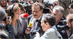 Première scène de l’Enquête : Gilles Lellouche (dans le rôle du journaliste Denis Robert) demande à sortir dans son jardin aux policiers venus perquisitionner au petit matin. La caméra tangue. Il s’effondre. Avant le générique, le spectateur comprend que çà va être intense. Il faut dire qu’« il en a », ce Robert. Son parcours musclé est passé par Libé. Dans le film l’Enquête, on le voit en démissionner dès lors qu’il constate que le rédacteur en chef veut édulcorer un article dénonciateur. De retour à la maison, sa femme (trop rare Florence Loiret Caille) l’encourage à saisir cette fenêtre de temps libre pour écrire un livre sur Clearstream, « chambre de compensation financière » titre aussi alambiqué que doit être le rôle d’une officine chargée de transit d’argent vers les paradis fiscaux. Son chemin va croiser un autre pourfendeur de la corruption, le très courageux juge Renaud Van Ruymbeke.