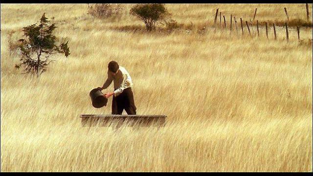 Fin août, à l’occasion de la dernière rentrée littéraire, le Rennais Éric Vuillard a publié Tristesse de la terre (voir notre article), récit dont le titre aurait très bien pu correspondre à l’objet filmique hors norme que constitue Mateo Falcone. Le film raconte la tragédie d’un enfant, qui, en l’absence de ses parents, abrite un fugitif, avant de se retrouver confronté à la violence de ceux qui le recherchent… Rappelant Steinbeck dans Des souris et des hommes, Éric Vuillard filme sans aucune forme de procès la brutalité sourde des hommes, et la met en parallèle avec la sérénité enchanteresse des grands espaces. Qui plus est, le réalisateur dépasse ce dualisme quelque peu convenu, pour filmer la « tristesse de la terre ». Ce projet singulier, qui n’est d’ailleurs aucunement explicité dans le film, repose notamment sur de très longs plans-séquences mettant en scène des hautes herbes battues par un vent retentissant. Le plus marquant, long de quatre minutes et demie, constitue une séquence d’anthologie, et appartient aux plus beaux moments qui nous seront donnés à voir au cinéma cette année. Chez Vuillard, le calme de la nature s’accompagne d’une langueur mélancolique, qu’il donne à voir par ces plans épurés, et à entendre par une bande-son minimaliste, dominée par le souffle rugueux du vent. Cette « tristesse de la terre » apparaît comme le résultat de la violence humaine, qui prend pour cadre une nature lasse de la contempler.