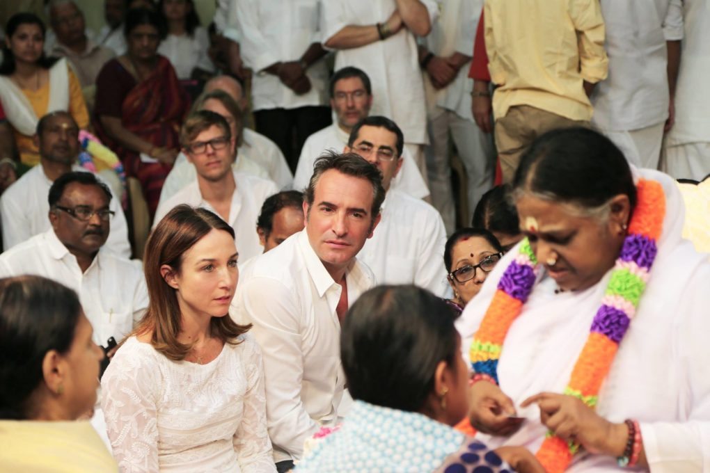 U. : C’est aussi un pays où le sort des femmes est peu enviable. Celui des intouchables aussi. Dans tous les sens du terme : on ne se touche pas. Or le tournant de l’histoire entre le célèbre compositeur (Dujardin) et la femme de l’ambassadeur se produit lors d’une de ces interminables séances de câlins dispensés par mère Amma, « gouroute » du Kerala…