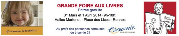 Pour la 9e année consécutive, l’association Trisomie 21 Ille et Vilaine organise une grande foire aux livres d’occasion, les dimanche 20 et lundi 21 avril 2014, dans les halles Martenot, Place des Lices à Rennes.