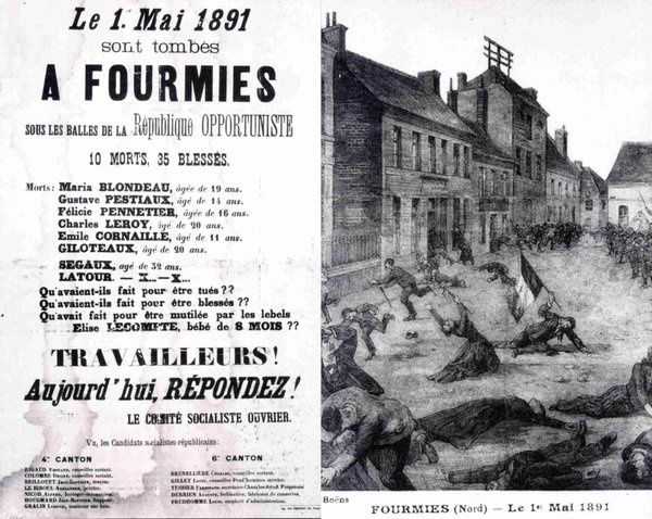 Au 19e siècle, la ville de Fourmies est une ville ouvrière comptant de nombreuses filatures. Des meetings sont organisés, on y dénonce les conditions de travail déplorables et on revendique la journée de 8 heures de travail. (La semaine de travail de 48 heures sera votée en France en 1919, celle de 40 heures en 1936 et celle de 35 heures en l’an 2000). Le 1er mai 1891 est resté gravé dans la mémoire de Fourmies.