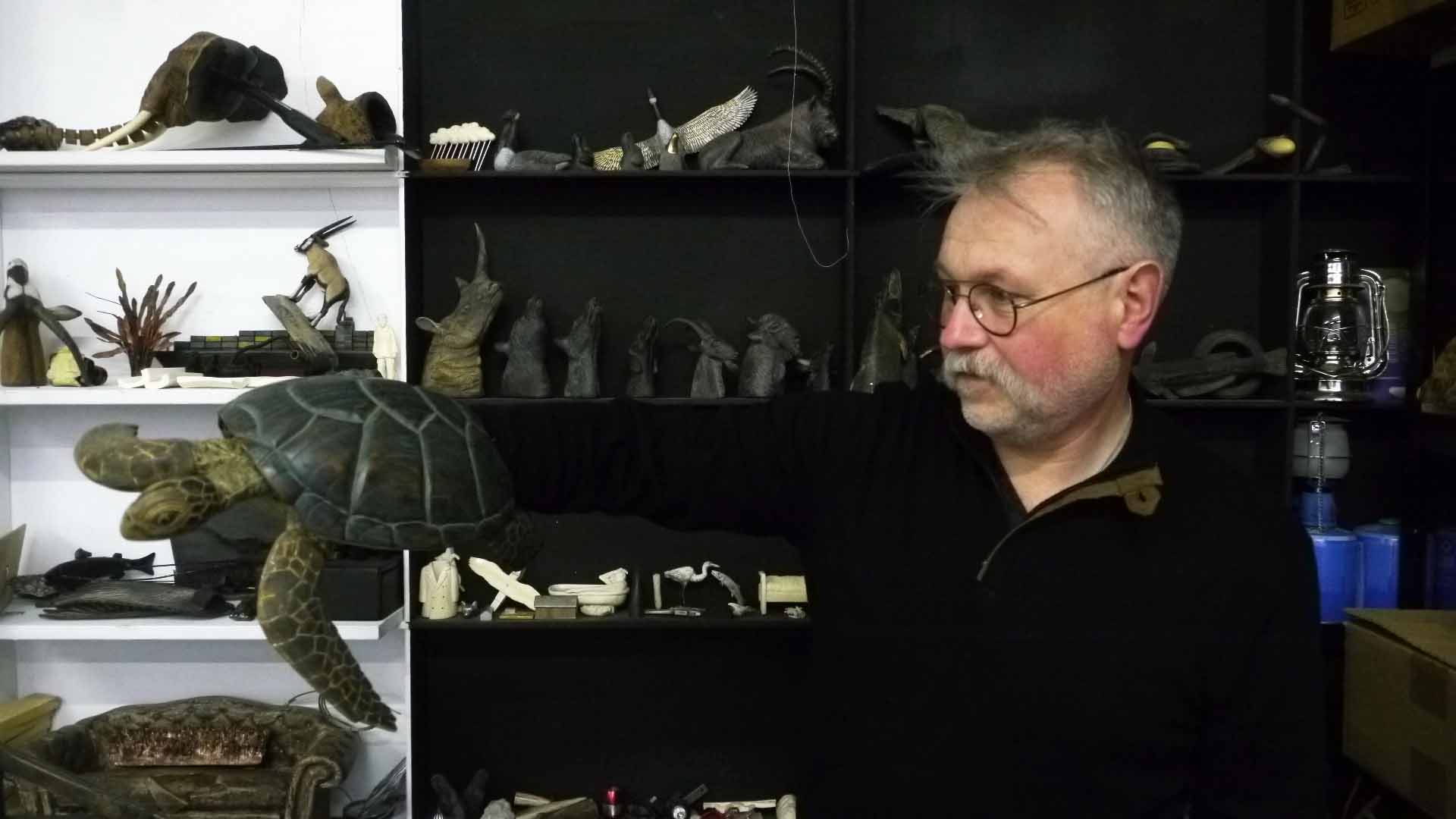 Dans une petite commune du Morbihan, Georges Peignard pousse la porte de son atelier où projets en cours de production et œuvres achevées parsèment l’espace. Entre ces murs emplis d’outils en tous genres, de tables et d’étagères peuplées de flacons, l’artiste breton tisse des relations avec chacune des matières qu’il travaille. « Chaque objet peut posséder en lui-même la trace d’une histoire », explique-t-il.