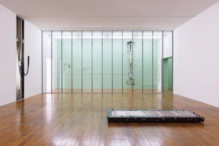 Lou Masduraud convoque également les sciences dures : lors d’une résidence récente au CERN, elle a exploré la corrosion, la tension, les transferts atomiques dans les matériaux. Ces phénomènes deviennent ici autant de métaphores de notre condition humaine : nous résistons, nous nous oxydons, nous échangeons. Et ses œuvres en cuivre, ses rigoles incrustées, ses fontaines intimes ou ses cabinets de contorsion en sont l’exact prolongement plastique.