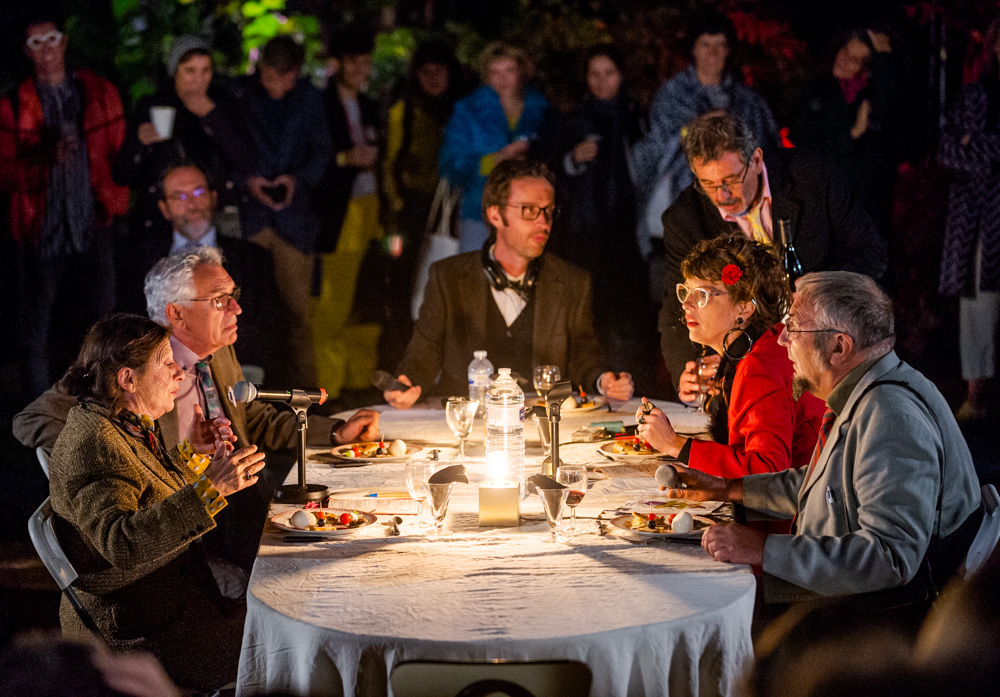 Clin d’œil à la critique d’art « qui se la pète un peu », La Grande Tablée est aussi l’occasion de mettre à distance un certain sérieux, voire un élitisme, du monde du spectacle, de s’amuser de ses codes et de ses pratiques pour retrouver sa capacité à nous lier dans une complicité commune. En définitive, un spectacle qui s’inscrit parfaitement dans l’esprit des Tombées de la nuit.