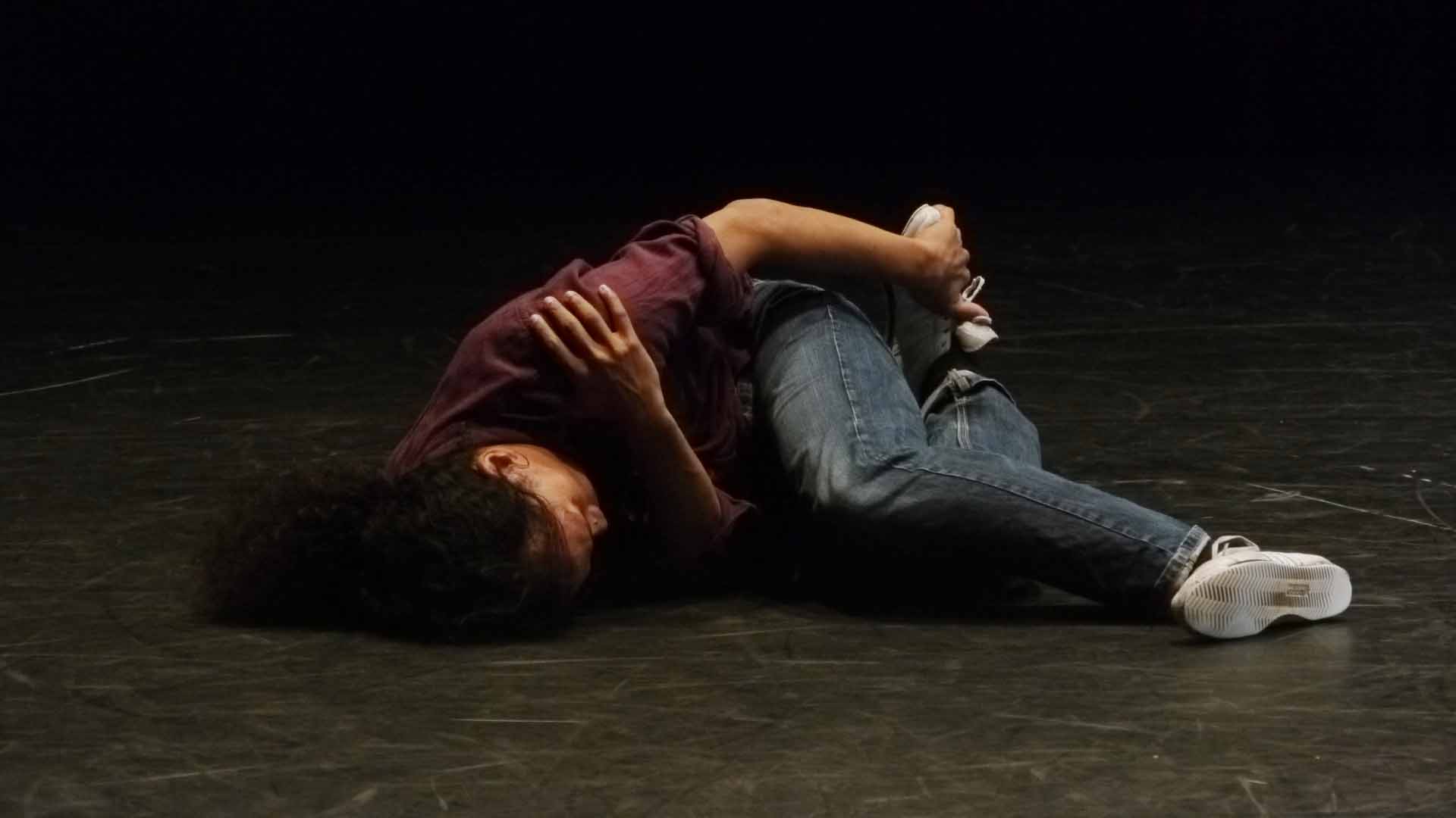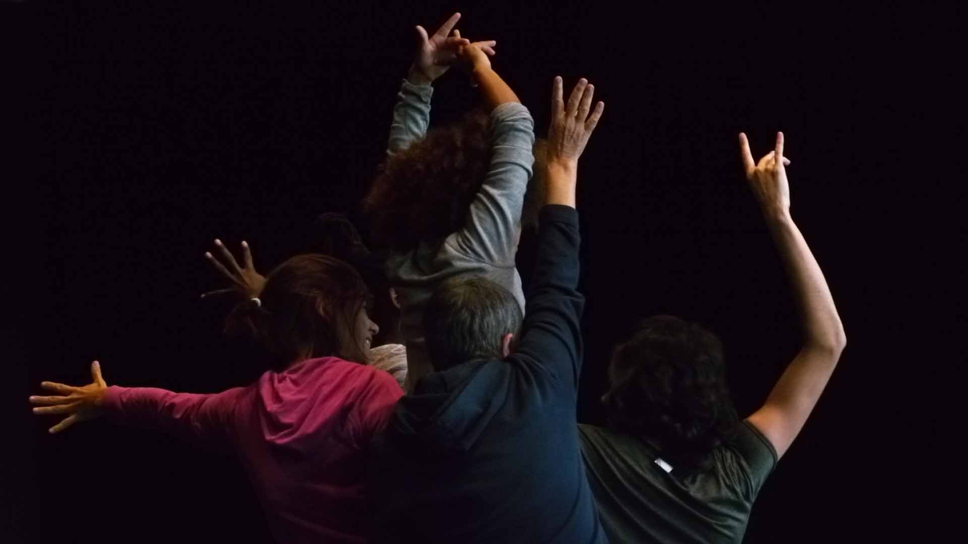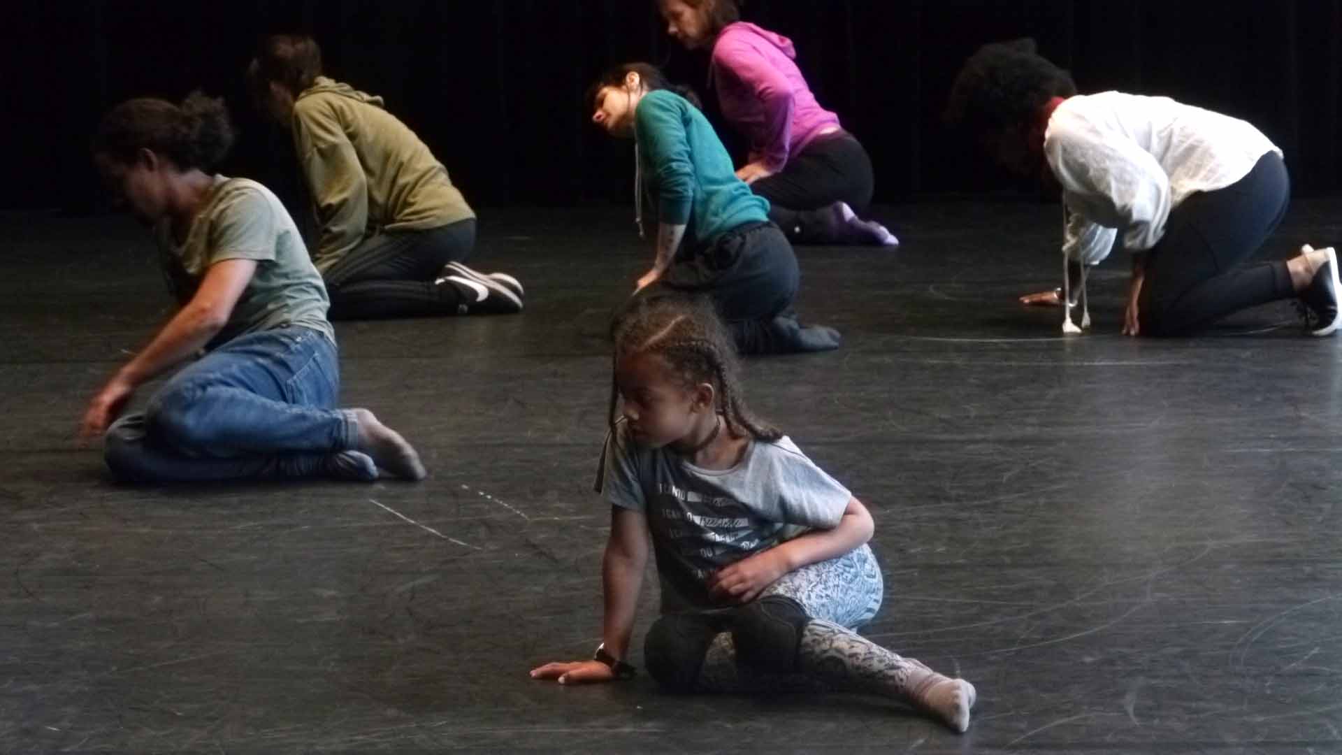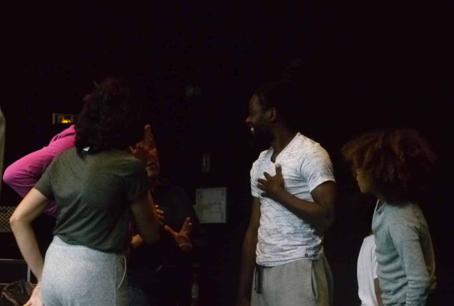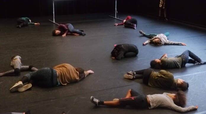 À la suite de ce premier échauffement, le chorégraphe leur propose des mouvements à répéter et chacun les appréhende à son rythme. Une chorégraphie se met doucement en place. Un à un, ils s’installent au milieu de la pièce et reprennent les mouvements proposés par Bruce Chiefare jusqu’au moment où tout le groupe est réuni au centre et performe à l’unisson.