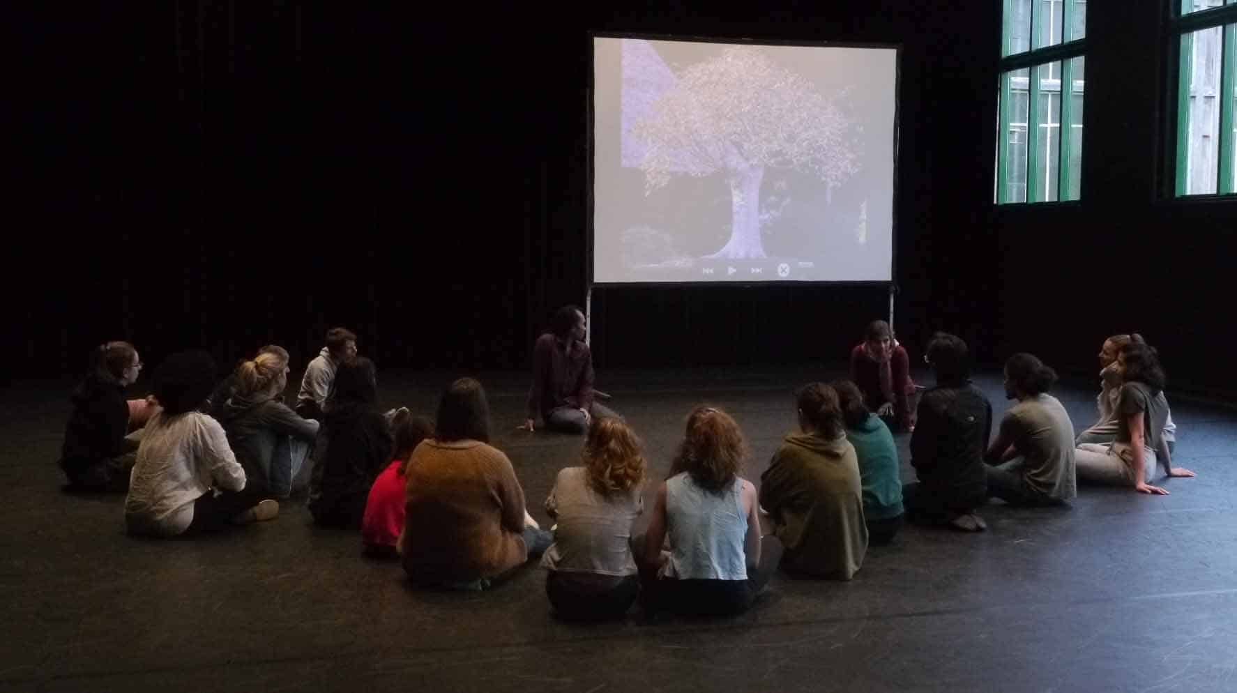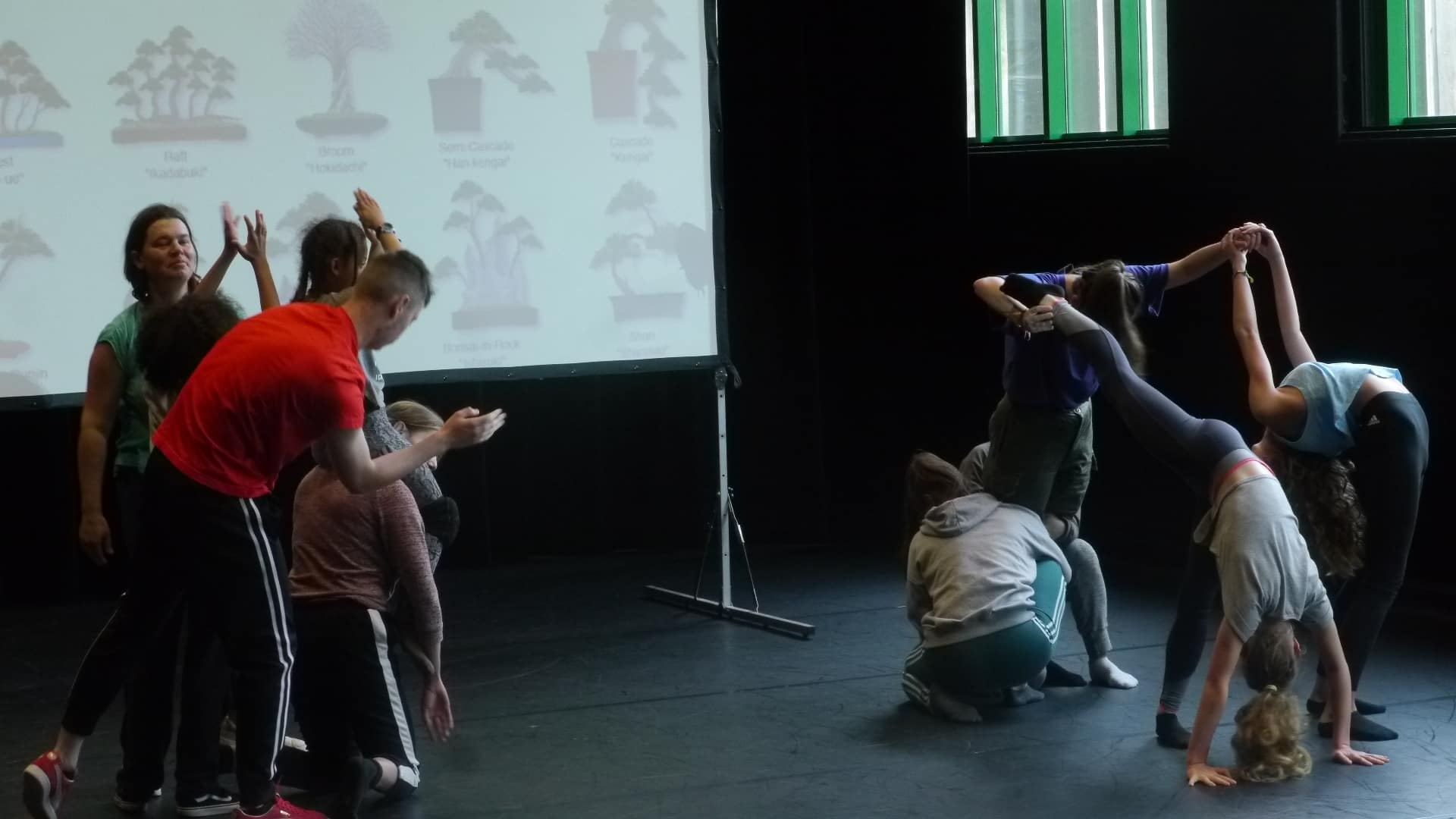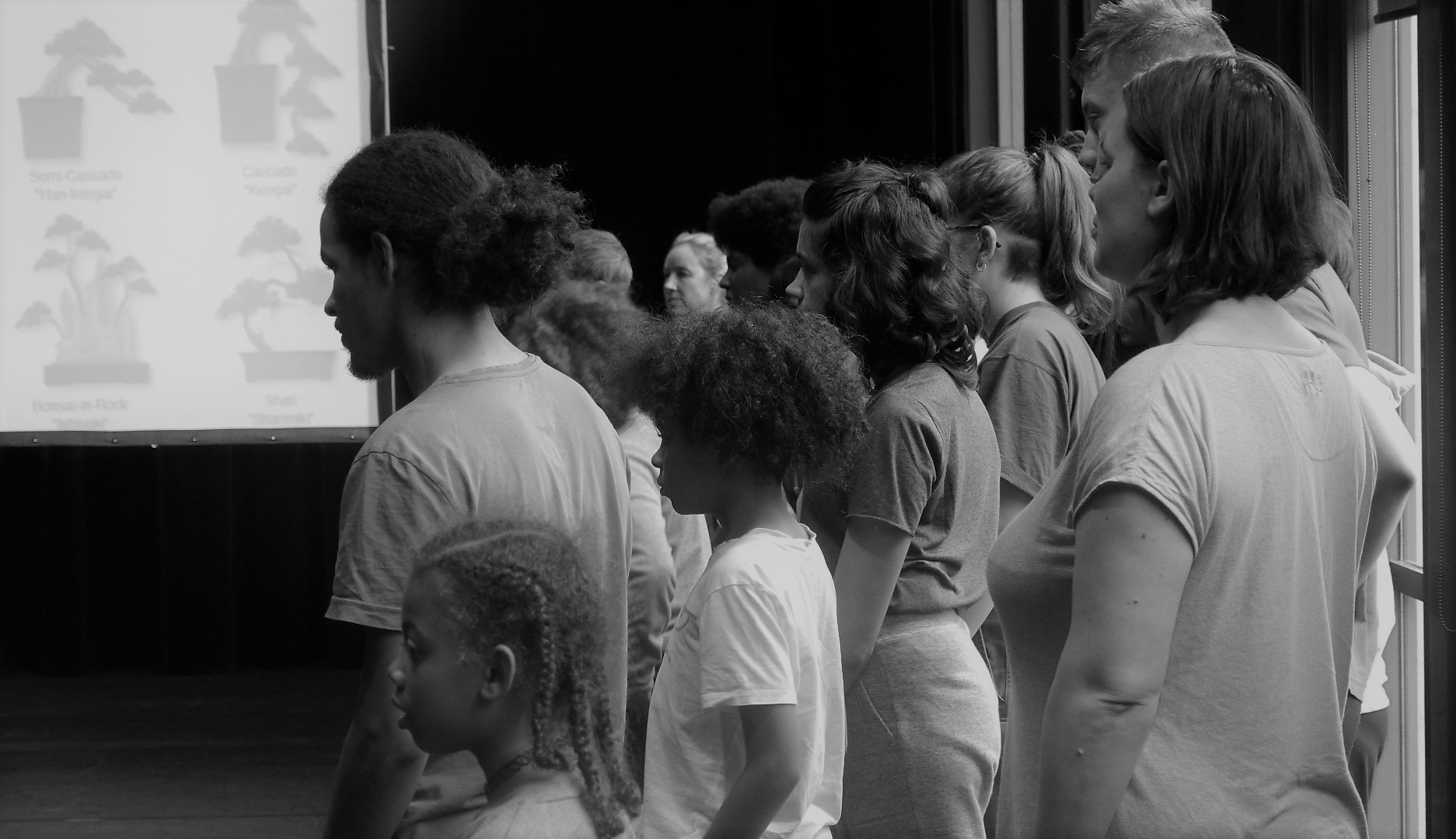 Droit (Chokkan en japonais), penché (Shakkan), en S (Moyogi) ou encore en semi-cascade (Han Kengai), la forme du bonsaï est liée à sa condition de pousse. Bruce Chiefare propose de former des groupes de quatre à cinq personnes et de danser dans la position de leur choix. Les groupes se forment rapidement, les niveaux et les âges se mélangent. Les participants communiquent facilement et Bruce Chiefare observe de loin, présent si le besoin s’en fait ressentir.