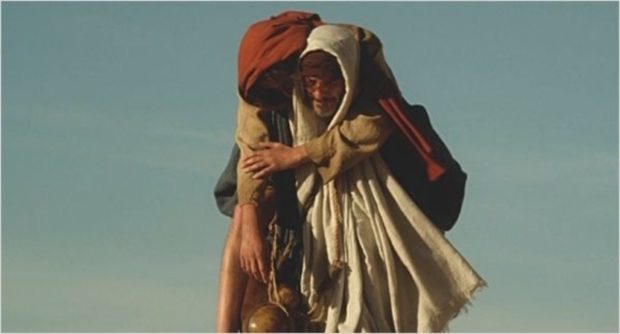 Comment représenter les scènes bibliques ? Rabah Ameur-Zaimeche semble nous donner deux réponses : l’une qui répond à l’hagiographie habituelle : la scène où Jésus chasse les marchands du temple, une autre moins traditionnelle, le pardon de la femme adultère. Dans le premier cas, la scène semble surjouée, déjà vue, presque sans intérêt. Par contre, la seconde est très belle. La jeune fille, nomme Bethsabée est victime. Jésus lui pardonne en rejetant la faute sur ces juges. La scène se termine par la purification de Bethsabée dans l’eau de la rivière. Scène de baptême qui rappelle la deuxième séquence du film lorsque Jésus se purifie après la tentation dans le désert. Cette scène de la femme adultère résonne d’ailleurs avec une scène de « Timbuctu », le très beau film d’Abderamane Sissakho. Le christ est ici plus clément que les juges musulmans qui laisseront dilapider la femme adultère.