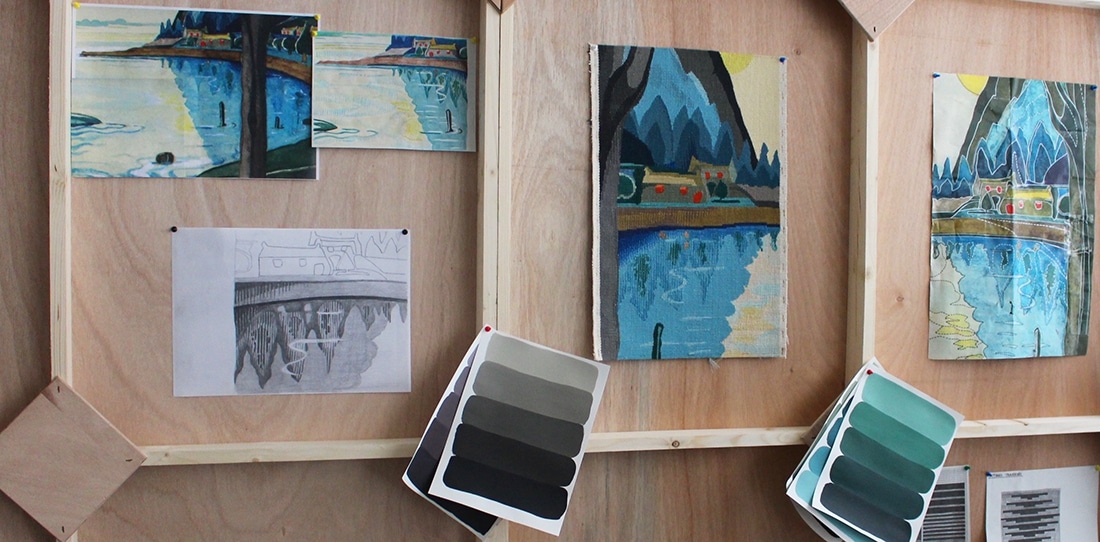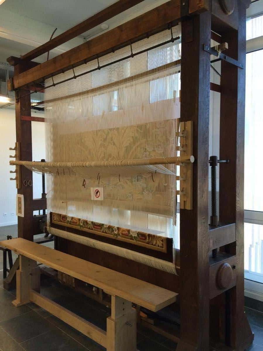 Le lissier place ce carton sous la chaîne tendue de son métier et tisse les formes et couleurs qu’il voit à travers les fils de chaîne.