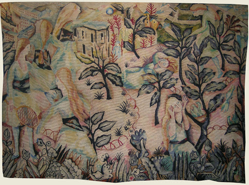 Maria, « l’exécutante » est définie comme couturière, compagne d’Émile Bernard, puis comme « amie » qui aurait vécu avec lui l’été 1892, puis l’hiver 1892-1893, avant leur départ pour la Méditerranée, périple durant lequel on perd sa trace sans avoir retrouvé son nom … Citons encore Musique pour une princesse qui s’ennuie d’Aristide Maillol, tapisserie réalisée en 1897 par Clotilde Narcis, Petites Filles vertes (1917) de Jean Lurçat, réalisé par Charlotte Lurçat, mère de l’artiste et Marthe Hennebert, sa première épouse. Il s’agit là de quelques exemples parmi la cinquantaine d’œuvres de l’exposition Premières de cordée de la Cité internationale de la tapisserie d’Aubusson. Ajoutons encore que l’exposition a révélé l’identité des exécutrices, réalisatrices de tapisseries, mais aussi d’artistes dont le nom est plus ou moins connu, plus ou moins célèbre tels qu’Émile Bernard, Paul-Élie Ranson, Fernand Maillaud, Paul Deltombe, Henri de Waroquier, Roger Bissière.