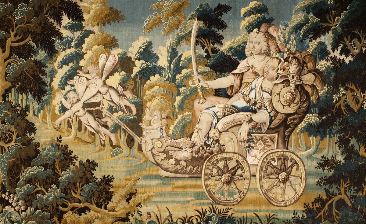 Le début du XVIIe siècle voit se développer des tapisseries représentant des scènes inspirées de romans à succès telle Armide enlève Renaud endormi sur son char, deuxième tapisserie d’une tenture en cinq pièces de la cité internationale de la Tapisserie d’Aubusson inspirée de La Jérusalem délivrée de Torquato Tasso – Le Tasse – 1581. Mais les lissiers – auteurs de tapisserie s’inspirent, outre de la littérature, de la mythologie, de la religion ou de l’histoire.