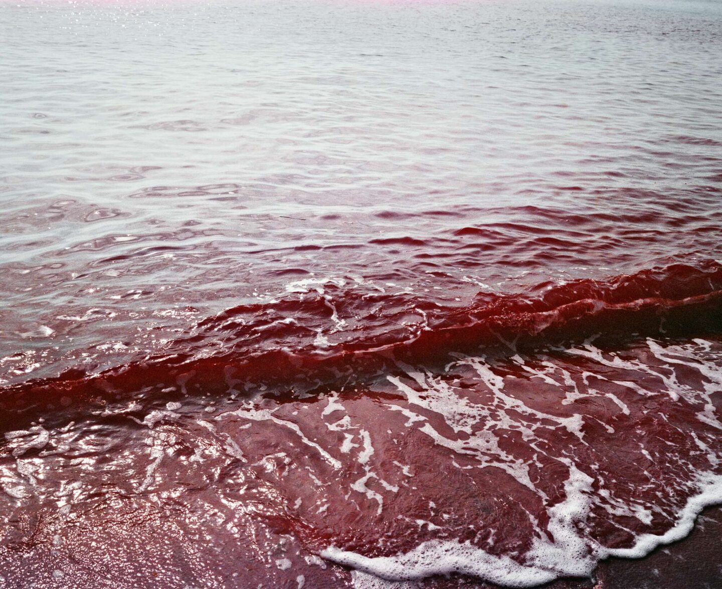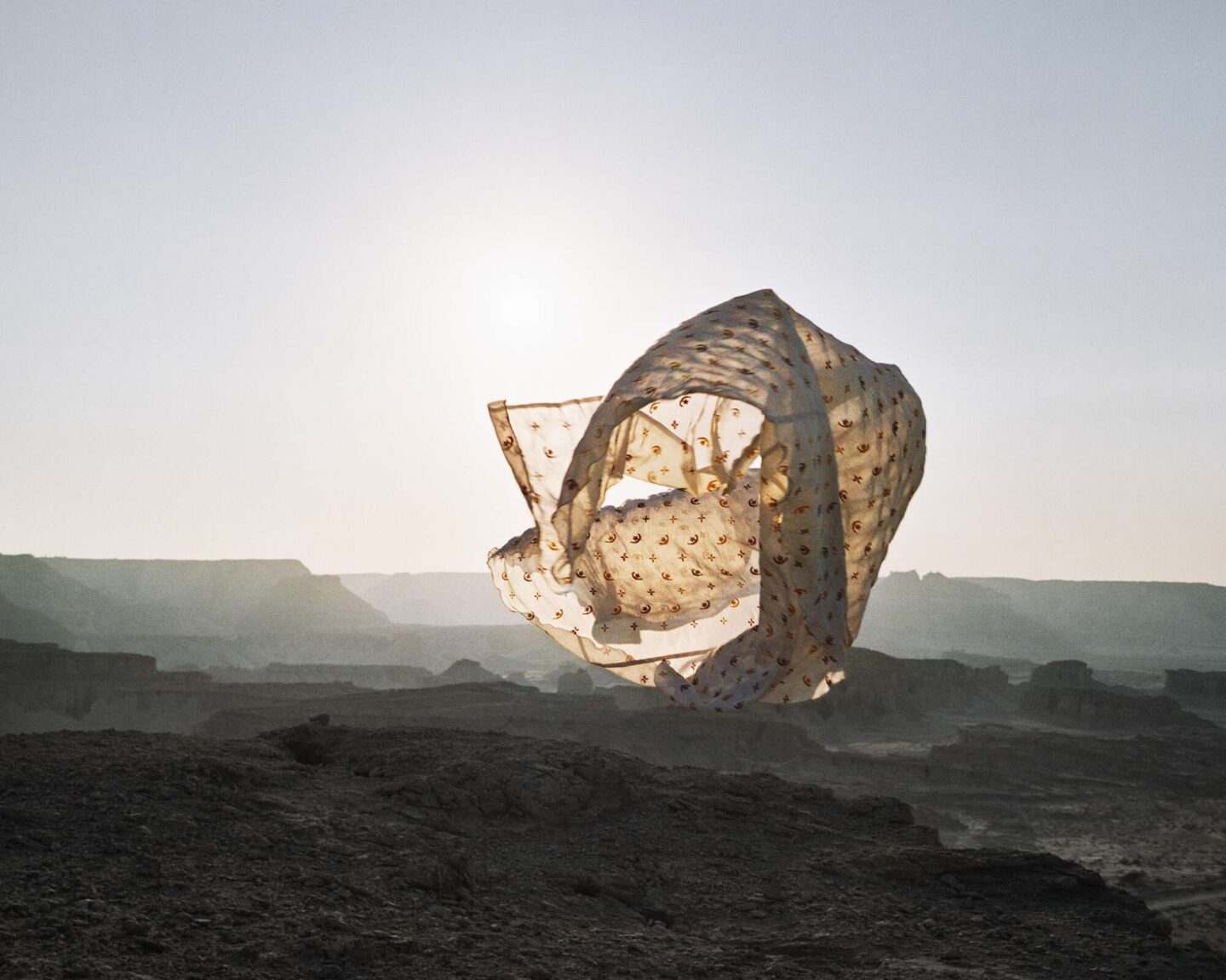 Avec Speak the Wind (série débutée en 2015, publiée en livre en 2021), l’artiste se tourne vers les îles du détroit d’Ormuz, dans le sud de l’Iran, où des pratiques rituelles tentent d’apaiser des vents considérés comme porteurs d’esprits et de maladies. Pendant cinq ans, elle explore ce territoire marqué par l’esclavagisme et une histoire de violence, s’allie aux habitants et recueille leurs récits, leurs dessins, leurs chants. Une question la traverse : « Comment photographier des entités invisibles comme le vent et la magie ? » Draps flottants, vagues rouges, silhouettes emportées répondent à cette interrogation, composant un portrait de la brise qui façonne les montagnes et qui, dans l’imaginaire local, peut posséder les corps. Les femmes y portent parfois des masques à moustaches pour tromper ce vent qui s’attaque surtout à elles. En donnant forme à ces croyances, Hoda Afshar donne aussi voix à une partie de la société iranienne longtemps marginalisée.