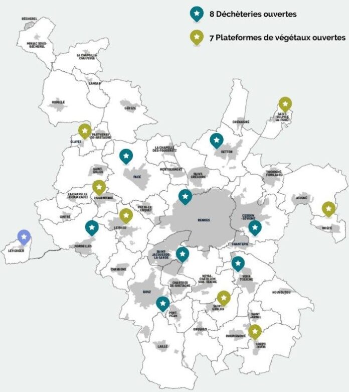 8 déchèteries sur 19 seront rouvertes à partir du 7 mai : Betton, Bruz, Pacé, Cesson Sévigné, Mivoie (Saint-Jacques de la Lande), Saint Armel, Mordelles et Rennes-Villejean.