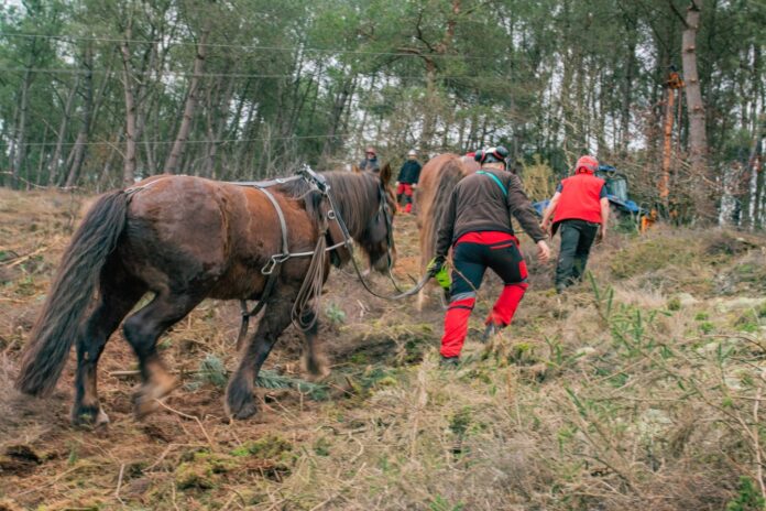 Cette action menée par traction animale n’est plus vraiment inédite. Depuis 10 ans, le Département d’Ille-et-Vilaine emploie des chevaux sur son territoire. Ils ont pour mission d’assister les hommes dans les travaux d’entretien des espaces naturels sensibles, notamment en facilitant le débardage du bois dans les zones fragiles et difficiles d’accès (forêts, tourbières, carrières, landes et zones humides). En plus de sa force, le cheval ne présente que des avantages par rapport à une machine, car il se glisse partout, n’abîme ni les arbres, ni les sols, ne pollue pas et ne fait pas de bruit assourdissant. Le cheval de trait breton est une race de chevaux de trait originaire de Bretagne. Issu de robustes petits chevaux locaux, son élevage s’organise dès la fin du XVIIe siècle sous l’influence de très nombreux croisements.