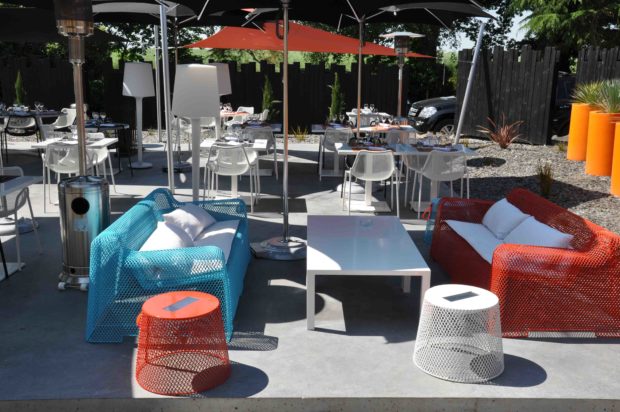 La Toscane est une province italienne réputée pour « parler autant à l’esprit qu’au corps » ; çà se vérifie au Toscano. Côté esprit, le cadre en est largement pourvu. Il faut dire que l’ancienne ferme en terre de La Mézière avait été restaurée de main de maître par l’architecte Hervé Perrin. L’intelligence des nouveaux propriétaires a été d’en respecter totalement la conception, en se contentant de l’adapter à sa nouvelle fonction et en créant une vaste et chic terrasse en béton ciré.