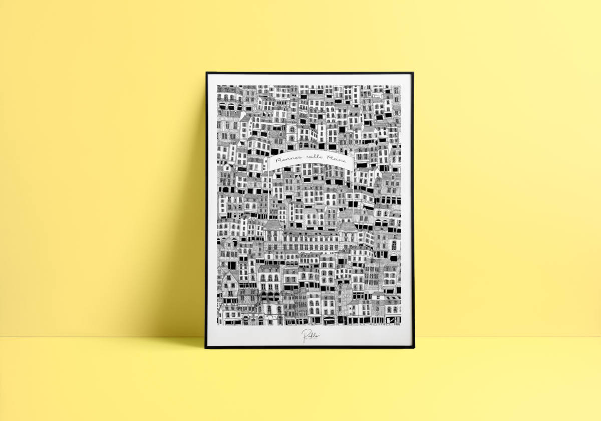 Depuis que je suis à mon compte, je propose des produits fabriqués de façon éthique. Tout ce que je propose à la vente est conçu localement par de petits ateliers bretons. Les sérigraphies sont réalisées par l’atelier rennais La Presse Purée. Toutes les sérigraphies sont éditées en quantité limitée sur du papier de qualité et sont ensuite tamponnées et numérotées. Les cartes postales sont, quant à elles, imprimées à Plougastel dans l’imprimerie Cloitre, et mes cadres sont réalisés sur mesure à Rennes par l’atelier La Fabrique.