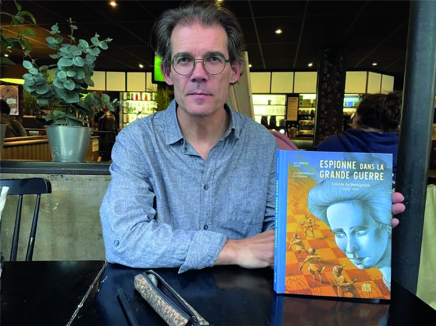 Une portrait couleur glacée à la chevelure volumineuse et aux traits sculpturaux, des soldats pour représenter la guerre 14-18 et un échiquier pour traduire la notion d’espionnage forment la couverture de l’opus récemment publié. Grande résistante durant la Première Guerre mondiale, Louise de Bettignies fait partie des personnes historiques que l’on a envie de faire connaître : issue d’une famille bourgeoise, elle avait pour projet de rentrer dans les ordres et ne se destinait pas à ce chemin de vie. « C’est un personnage hors norme qui se fait embarquer par l’Histoire », exprime-t-il. « Comme beaucoup femmes déterminantes dans l’histoire, elle a été oubliée. »