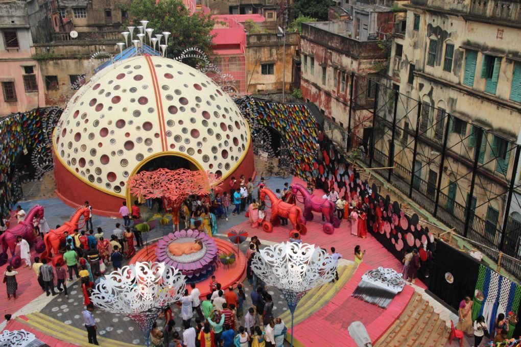 Tous les ans en Inde, fin octobre, la fête religieuse de Durga puja bat son plein dans le Bengale-Occidental. Devenue une grande exposition d’art à ciel ouvert, elle conduit tous les habitants des quartiers à travailler ensemble. Osée, elle propose des créations progressistes d’artistes engagés. Éphémère, elle s’efface après une semaine de liesse. Exemples de mises en scène audacieuses…