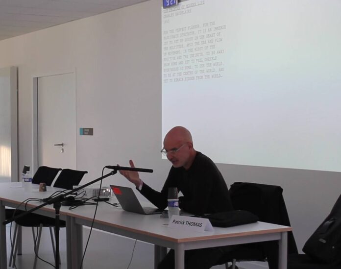 La conférence donnée par Patrick Thomas s’est déroulée entièrement en anglais. Voyageant spécialement en train depuis Berlin, le designer a accepté un entretien afin de répondre aux questionnements de ces étudiants en design graphique. Cela a permis de comprendre la démarche d’un professionnel du design engagé. Cet échange a éclairé sur le regard d’un designer qui partage, avec ses élèves, sa passion et ses engagements actuels tels que les enjeux environnementaux, sociaux et culturels, etc. Entretien.