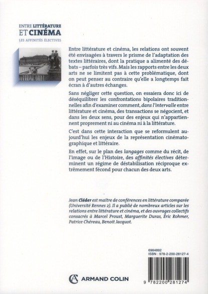 Maître de conférences en littérature générale et comparée (Université Rennes 2), Jean Cléder travaille sur les relations entre littérature et cinéma. Il a publié récemment Entre littérature et cinéma : les affinités électives (Paris, Armand Colin, collection « Cinéma / Arts visuels », 2012), Michael Lonsdale : Entretiens avec Jean Cléder (Paris, François Bourin Editeur, collection « Interprétations », 2012), et des entretiens inédits de Jean-Pierre Ceton avec Marguerite Duras (Paris, François Bourin Editeur, 2012).