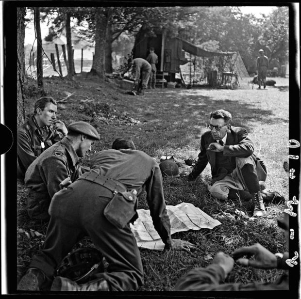 L’envie est trop forte : il prend ses cliques et ses claques et, un appareil photo en poche, il s’embarque pour la France. Pendant un mois, il suit la progression des troupes américaines en Normandie puis en Bretagne. Là, il tombe littéralement sous le charme des populations françaises qui accueillent les Américains à bras ouverts tandis qu’il découvre une armée allemande épuisée et en déroute. Devenu photographe pour l’occasion (et pour la seule fois de sa vie), ce vénérable journaliste (né en 1916 dans le New Jersey) rapporte aux Etats-Unis une douzaine de pellicules en noir et blanc.