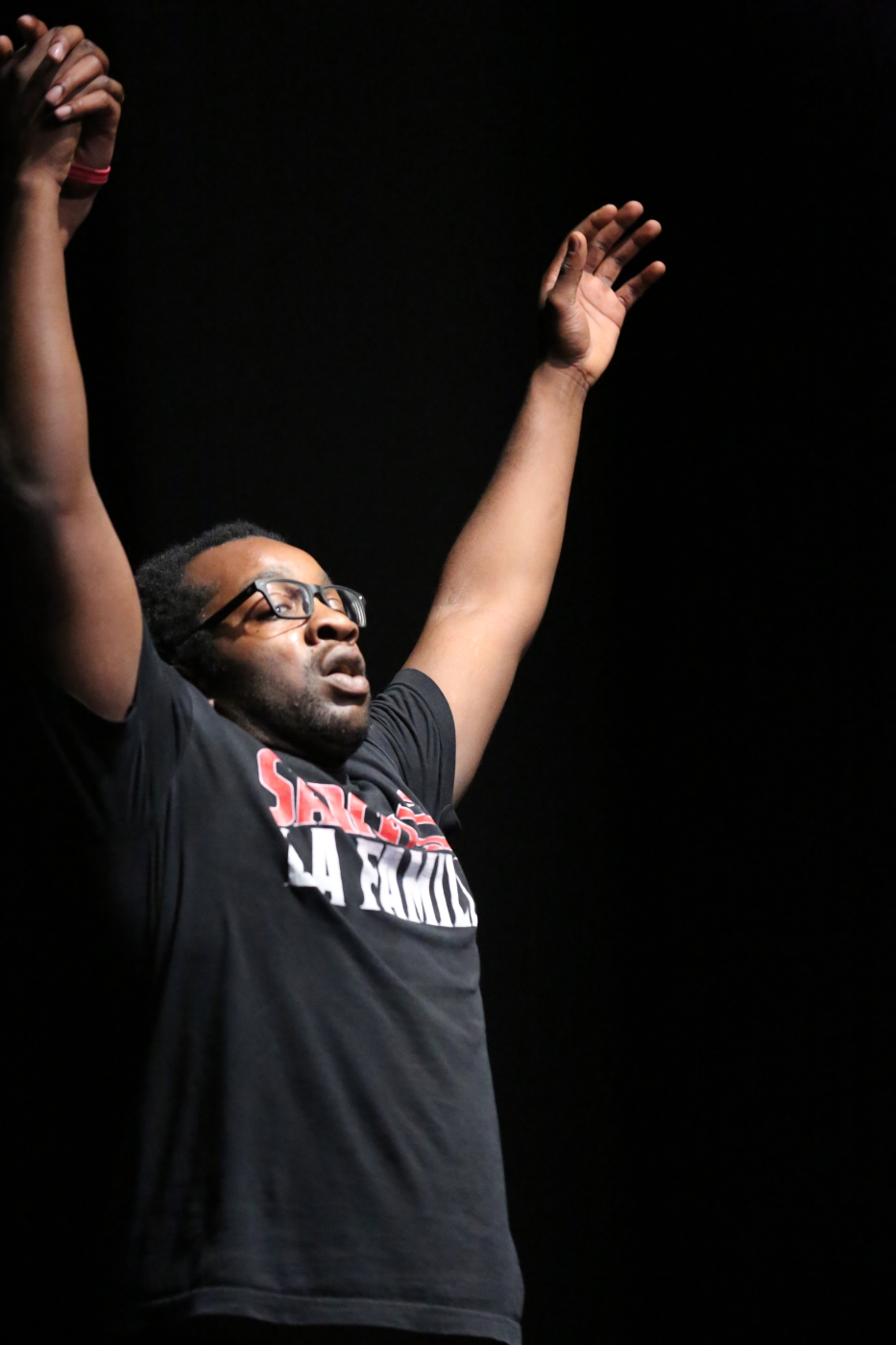 Au départ, le krump se dansait dans la rue entre personnes de même culture. Les quatre krumpers et le breaker se partagent le plateau, se hypent (s’encouragent), se défient et surtout partagent l’espace dans la danse en se montrant tour à tour leurs figures. Les chorégraphes ont ponctué de séquences filmées les démonstrations entre danseurs. Ces séquences montrent les danseurs un à un, en gros plans, se présenter, dire ce qu’est le krump pour eux. Cette adresse va au public du théâtre assis et non debout comme dans la rue. Elle va faire le lien entre les deux pratiques – danse de rue, danse contemporaine –, les deux dispositifs – rue, théâtre – jusqu’au point de jonction quand Raphael Hillebrand propose au public de se lever pour un workshop express. Prendre conscience de sa colonne vertébrale. Une porte d’entrée vers la prise de conscience du corps souvent laissé pour compte. Le public expérimente ainsi les premiers pas qu’ont faits avant eux les danseurs qu’ils regardent. Un spectacle comme une invitation réciproque entre deux mondes qui ne se côtoyaient pas et la démonstration que la réponse est positive.