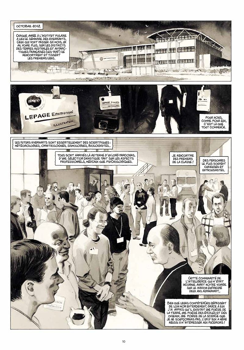 Emmanuel Lepage : Personnellement j’ai vu mes limites physiques, mais aussi morales. Ça me rappelle que je ne suis pas un aventurier ! Le voyage renvoie à soi-même, on est à l’os. Je ne peux pas dire que ce fut un voyage « agréable ». Par contre j’ai pu rencontrer des gens fascinants. Que ce soit parmi les scientifiques ou le personnel technique. Ce sont pour la plupart des gens « habités » par leur mission. C’est un monde où sa survie dépend des autres. Il y a une grande solidarité qui les anime. En Antarctique comme dans les terres australes, au-delà des paysages et de l’environnement inouï dans lequel nous étions, c’est l’Homme qui m’a touché.