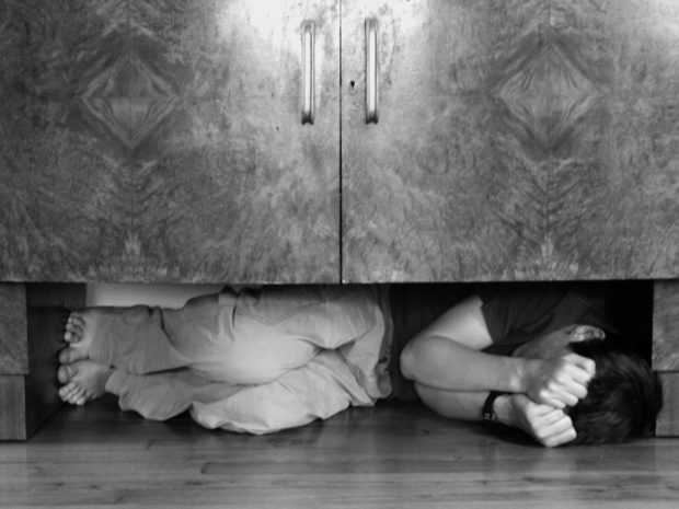 Quoi qu’il en soit, Charlotte m’a offert une photo bizarre, trouvée au marché aux puces. On y voit un jeune homme en position fœtale, qui se cache. Elle m’a dit qu’elle avait vu un vieil homme recroquevillé comme ça à l’hospice où, parfois, elle allait rendre visite à sa grand-mère. Je l’ai accrochée dans le bureau. Quand je suis arrivé, l’espace était vide, mais propre.