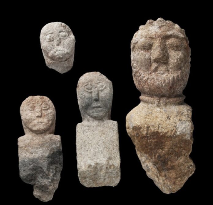 Quatre bustes sculptés et un sceau, datés entre le 2e et le 1er siècle avant J.-C. et découverts en 2019 par une équipe archéologique de l’Inrap à Trémuson (Côtes d’Armor), viennent d’être acquis par le Musée de Bretagne.
