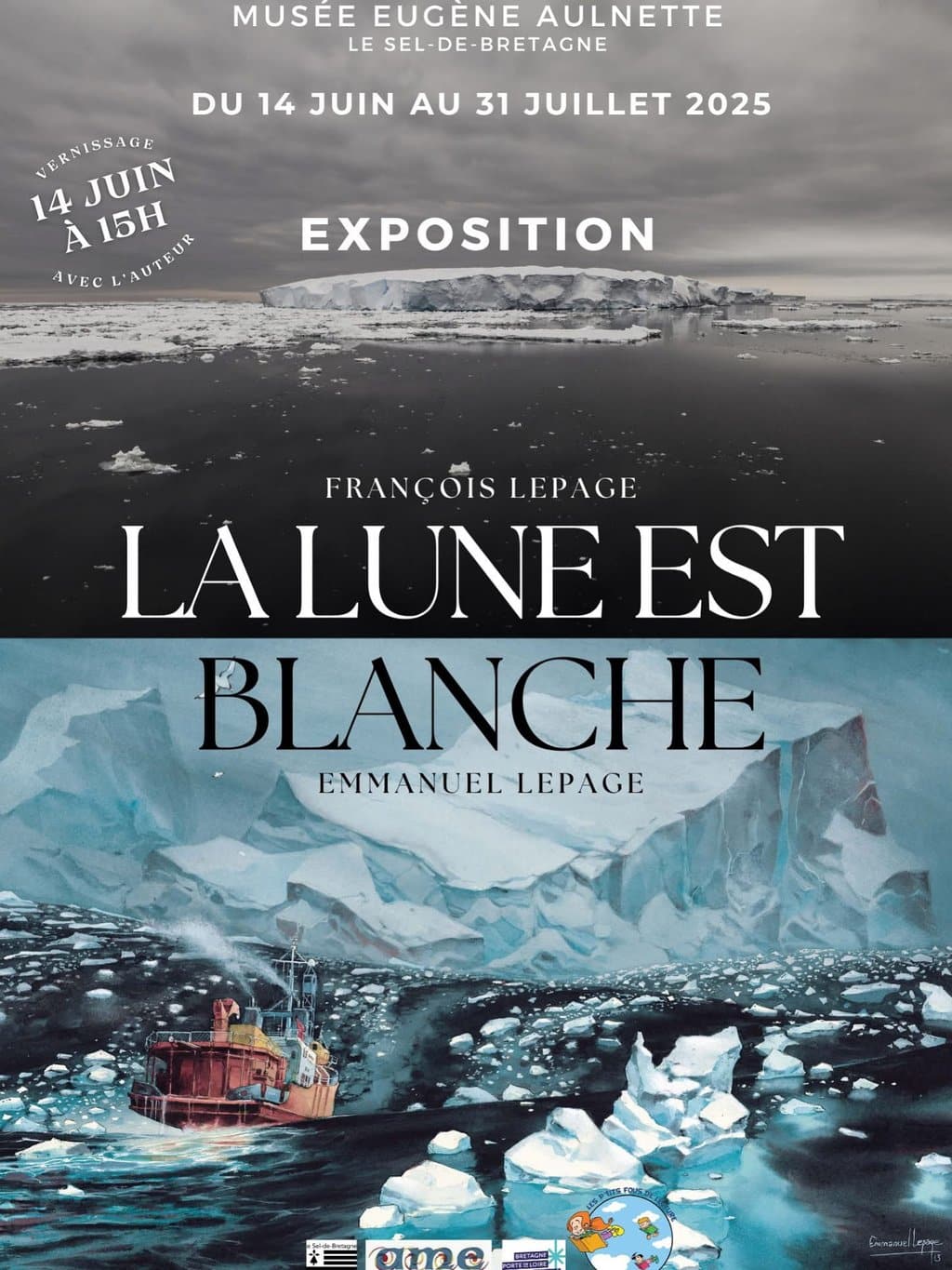 Du 14 juin au 31 juillet 2025, le musée Eugène-Aulnette, au cœur du village du Sel-de-Bretagne, propose une exposition immersive et singulière intitulée La Lune est blanche. Réunissant les talents croisés d’Emmanuel et François Lepage, cette exposition hybride entre bande dessinée et photographie rend compte d’une expédition scientifique en Antarctique menée dans des conditions extrêmes. Un événement culturel rare, entre art, engagement scientifique et exploration de la mémoire humaine face à l’immensité blanche.