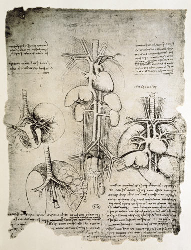 Léonard de Vinci avait marqué son temps par le génie de sa peinture. Si l’on savait aussi son intérêt profond pour les études scientifiques en matière d’architecture, d’optique, de géologie, de botanique, d’hydrodynamique, connaissait-on, en son temps, avec autant d’évidence, les travaux qu’il développa sur l’anatomie humaine ? À vrai dire, rares étaient ses contemporains qui avaient eu connaissance de ses descriptions détaillées du corps humain. Ce n’est qu’aux XIXe et XXe siècles que l’on s’est penché vraiment sur ses milliers de dessins et de croquis : autant de travaux et de recherches qui ont occupés la dernière décennie de la vie de Léonard, beaucoup plus que ses peintures qu’il se contentait alors de reprendre et retoucher.