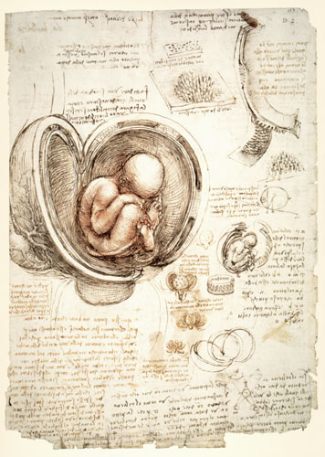 En 1489 pourtant, il obtint un crâne qu’il sectionna et une jambe qu’il disséqua, dont il fit des dessins d’une étonnante précision. Son statut d’artiste de cour conféré par son protecteur, le duc Ludovic Sforza alors maître de Milan et des hôpitaux de la ville, lui facilita sensiblement l’accès à l’étude des cadavres, ceux que personne ne réclamait. Il aurait ainsi disséqué plus de trente corps. Et les dissections pratiquées à Milan, ainsi qu’à l’école de médecine de l’université de Pavie quelques années plus tard, le poussèrent à rédiger un traité général d’anatomie, abondamment illustré et organisé selon la croissance progressive du corps humain, depuis son stade embryonnaire dans l’utérus jusqu’à l’âge adulte. Projet qu’il ne put malheureusement mener à son terme.