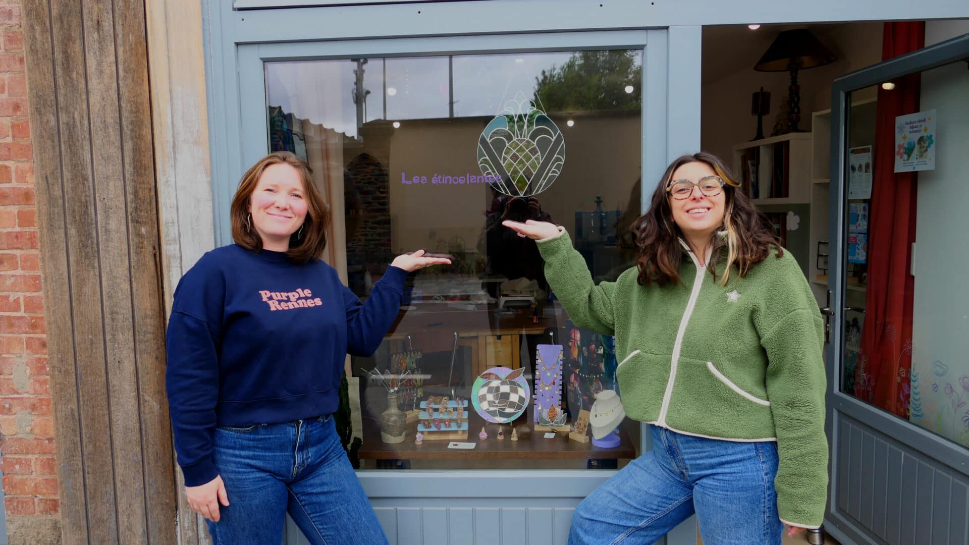 Lisa d’Atelier Distrait et Aurélie de Reflets Clémentine attendent d’ouvrir leur boutique Les Étincelantes au quartier Saint-Hélier en septembre 2025. Les deux créatrices proposent un avant-goût de leur univers respectif, tous deux hauts en couleur, au pop-up store Yuna & Co de leur amie Morgane à la Visitation de Rennes.