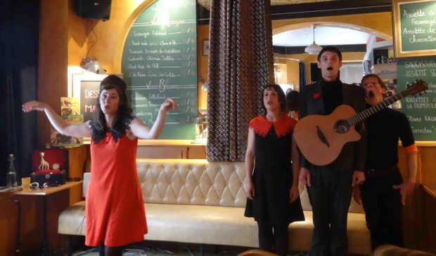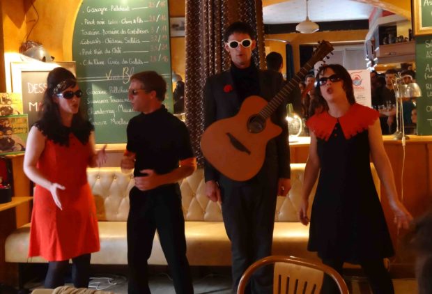Quand quatre salariés d’une entreprise, fabriquant un célèbre jouet pour enfant, décident de se lancer dans la chanson… cela donne « Les Girafe Song ». Composée de Fred, Sophie, Rémi et Sophy, la formation s’est produite le 27 juin au bar le Hibou de Rennes. Le public connaissait la musique…
