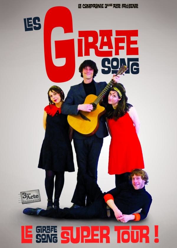 Les Girafe Song tirent leur nom de Sophie la girafe, un jouet emblématique et bien connu des enfants. Dans cette lignée, les comédiens interprètent le rôle de salariés de l’usine de jouet qui décident de se reconvertir dans la musique. Jouant entre leurs personnages fictifs et la véritable existence de leurs métiers, les protagonistes possèdent une double casquette : technique et artistique. L’un se présente comme spécialiste roto)mouleur sur latex, mais aussi… chanteur ! Tous arrivent face au public un sourire béat aux lèvres. Et peu assurés comme si c’était leur première arrivée sur scène. La première d’une série d’extravagances qui enchaine les dérapages…maîtrisés. Ces interprètes tantôt sérieux tantôt spontanés survolent cet univers de magie et d’innocence qu’est l’enfance. Entre reprises et arrangements personnels, les titres de Brassens, les Wriggles, Juliette ou, encore, Jacques Prévert s’enchaînent durant cette soirée poétique.