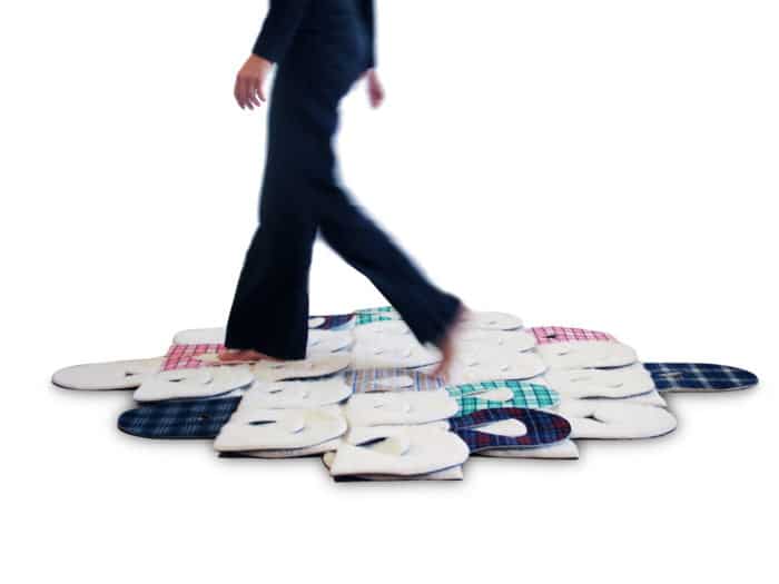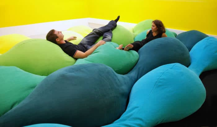 C’est une pièce unique pour le Centre Pompidou-Metz, mais une version reproductible que nous éditons nous-mêmes est disponible. C’est d’ailleurs la seule. Elle a notamment été utilisée dans les salles de préparation à l’accouchement, présenté en médiathèque comme lieu de réunion… Une fois, j’ai organisé une présentation dedans ! C’est intéressant de constater que, selon que vous adoptez une posture plus ou moins allongée, vous n’avez pas la même écoute. Les distances entre les gens s’amenuisent et une liberté de parole s’instaure. Ce projet réunit plusieurs facteurs auxquels nous sont sensibles – l’utilisation du textile également – et laisse place à l’imagination.
