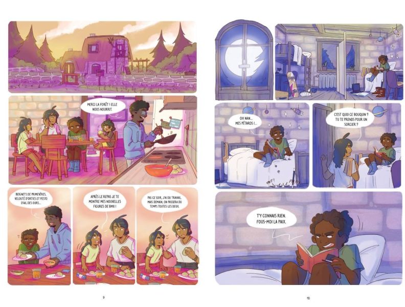 Le grand atout du tome 1, c’est aussi son identité graphique. Priscilla Bourgeat livre des planches dynamiques et très colorées, avec des personnages expressifs, une lisibilité constante de l’action, et une chaleur visuelle qui “porte” l’aventure. ZOO insiste sur ce point : des dessins qui “pimpent” et renforcent l’élan du récit. Pour le public jeunesse, c’est décisif : l’univers est immédiatement habitable, et la forêt fantastique a suffisamment de variété pour nourrir l’émerveillement sans perdre le lecteur.