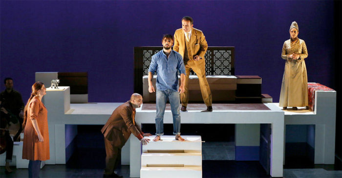 Intitulé Kalîla wa Dimna, l’opéra est mis en scène en 2016 par le Palestinien Moneim Adwan à partir d’une réécriture par le Syrien Fady Jomar du recueil du Perse Ibn-al-Muqaffa composé il y a… plus de 1200 ans. Lui-même fut grandement inspiré du Panchatantra, recueil indien de contes et de fables animalières, rassemblé des siècles plus tôt et qui inspira également « notre » Jean de La Fontaine. Tout ici semble histoire d’écriture et de réécriture, de langage et de traduction, d’interprétation et d’actualisation.